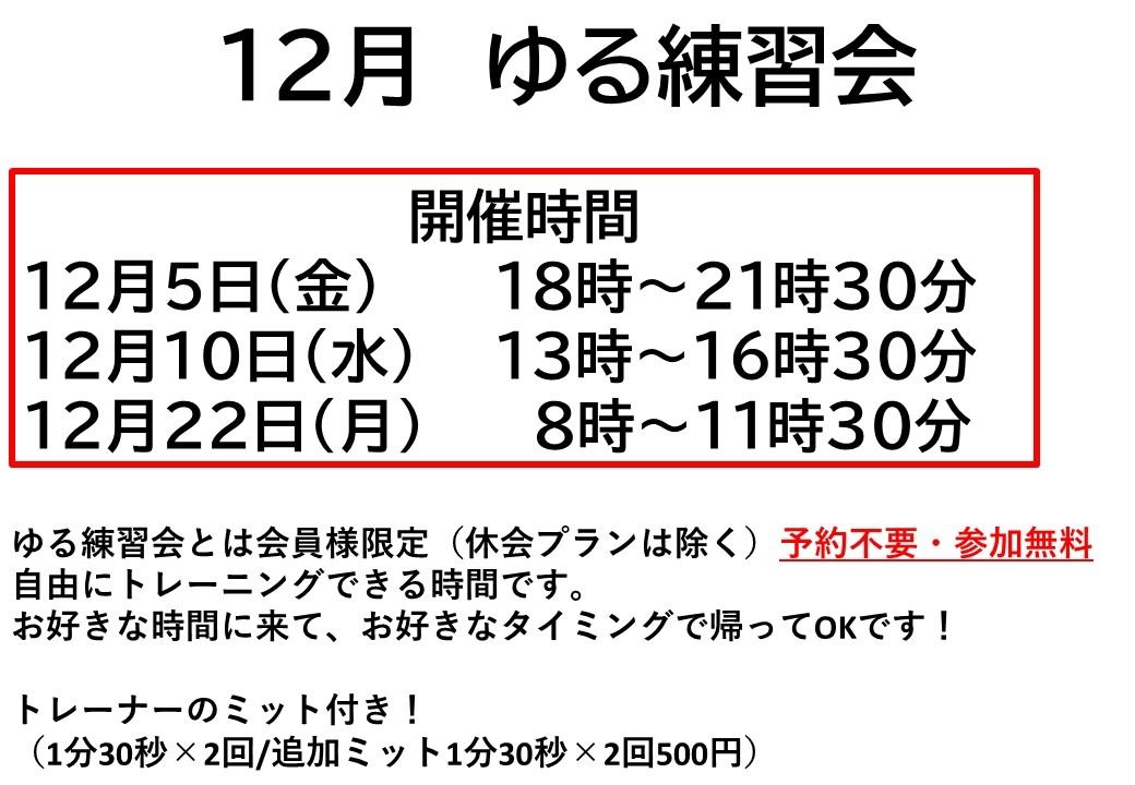 12月のゆる練習会のスケジュールになります!